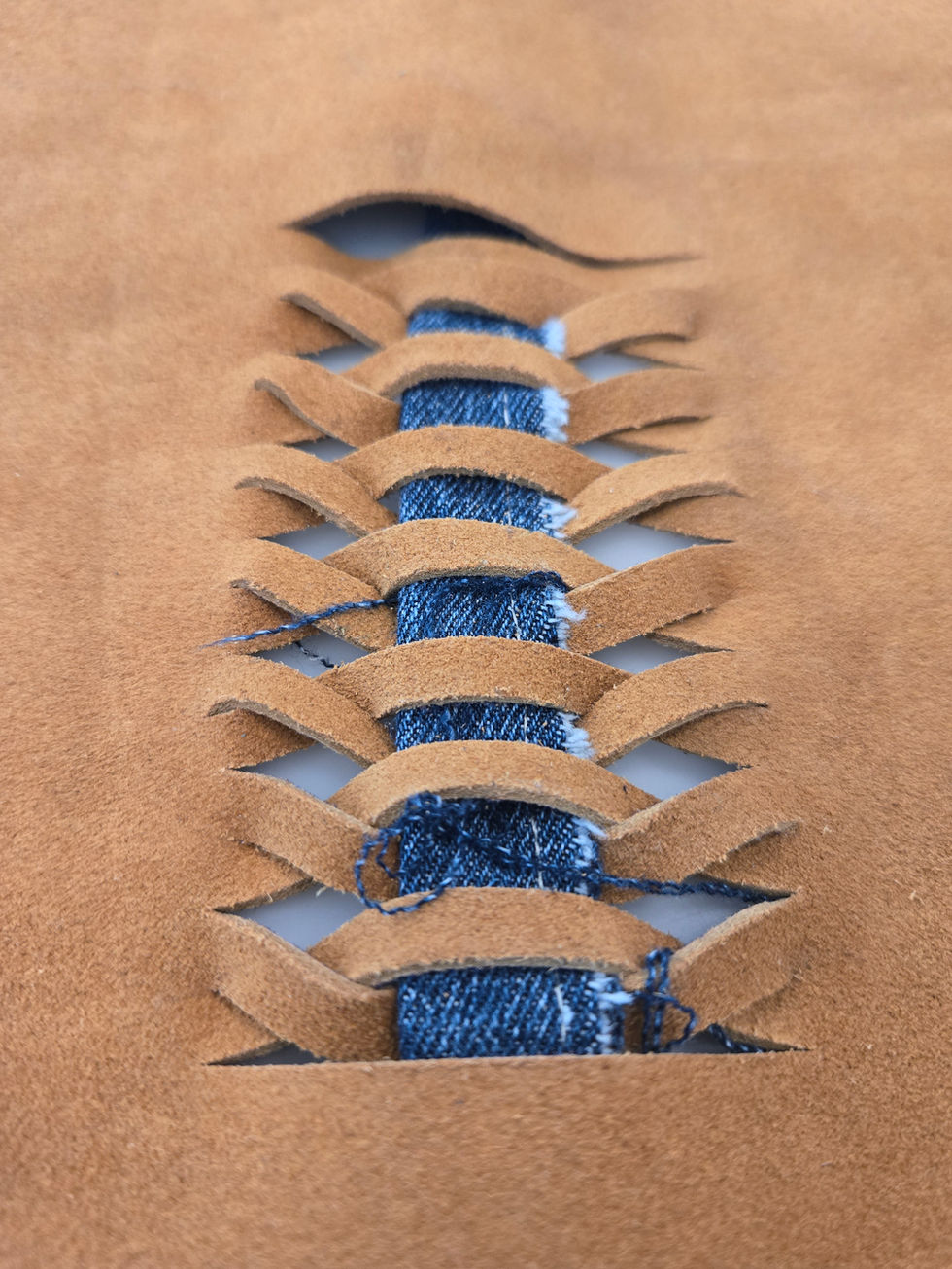 (re)vived & (re)woven explores repair and recycling through weaving. Continuing my master’s research into alternative methods of shoemaking and sustainable materials, this commissioned work for the Shoe Museum (Schoenenkwartier) investigates weaving as a means of repair. Using leftover materials from factories, such as shoe laces or leather cuttings, I weave these into existing footwear. The project continues my exploration of how weaving can turn repair into a form of renewal.